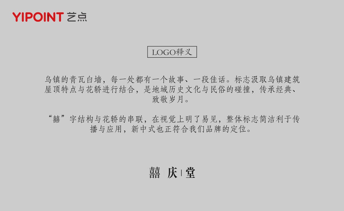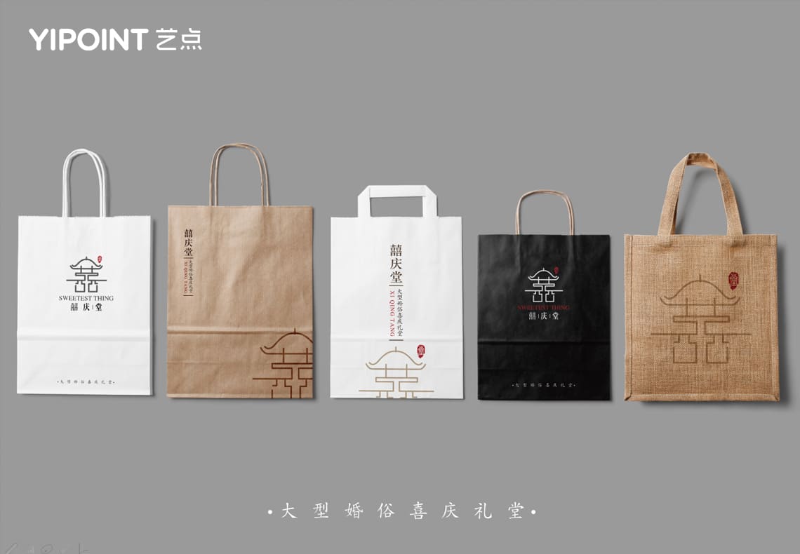 在形象塑形方面,我们认为整体囍字的运用符合喜庆礼堂的品牌主题,logo上方的弧形运用了江南小桥的元素,logo下方的横竖起伏糅合了江南房屋的特色,整体形象深度迎合江南的地区特色,以及文化底蕴,使品牌的意识更深入客户的心,从品牌视觉上,提升自身软实力,结合优秀的设计美化,在当代人犹如沙漠般婚姻道德意识中,让囍庆堂化为甘泉,涌出宁谧和安慰,使人洗心涤虑,怡情悦性