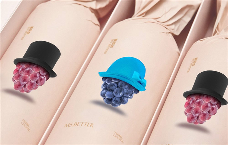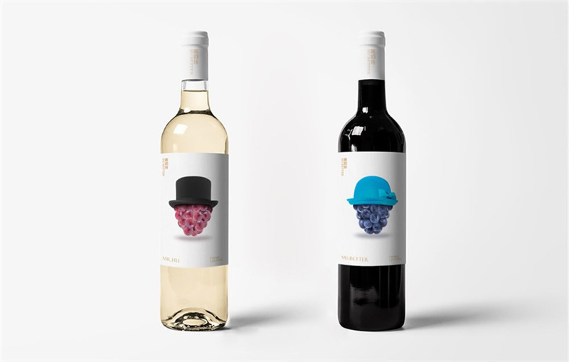 该红酒以线上销售为主,主营年轻市场,同时线下酒庄进行销售,主要群体为前来酒庄拍摄婚纱的情侣。通过沟通和调研,确定:视觉符号以“年轻好玩”为概念,包装视觉轻松幽默。同时兼顾线下情侣伴手礼市场。