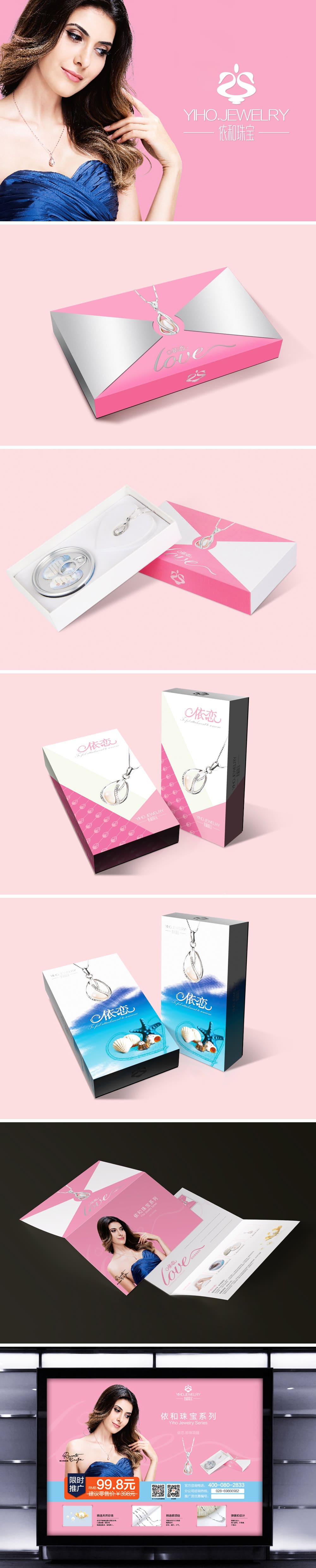 解决方案:蔚派针对珠宝包装设计,文案创意,模特拍照,产品特写P图,细节颜色素材表现依和珠宝系列的依恋项链,精选天然珍珠之美,精选银项链,弹簧扣设计等特点。