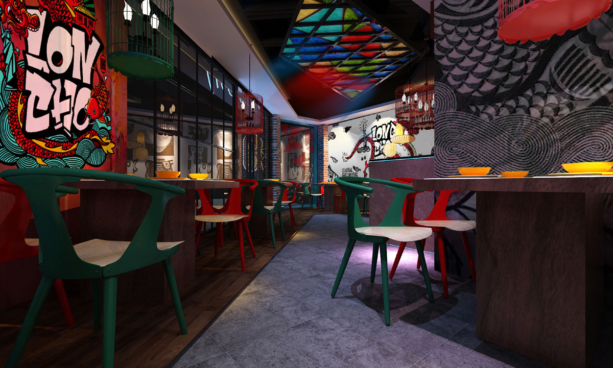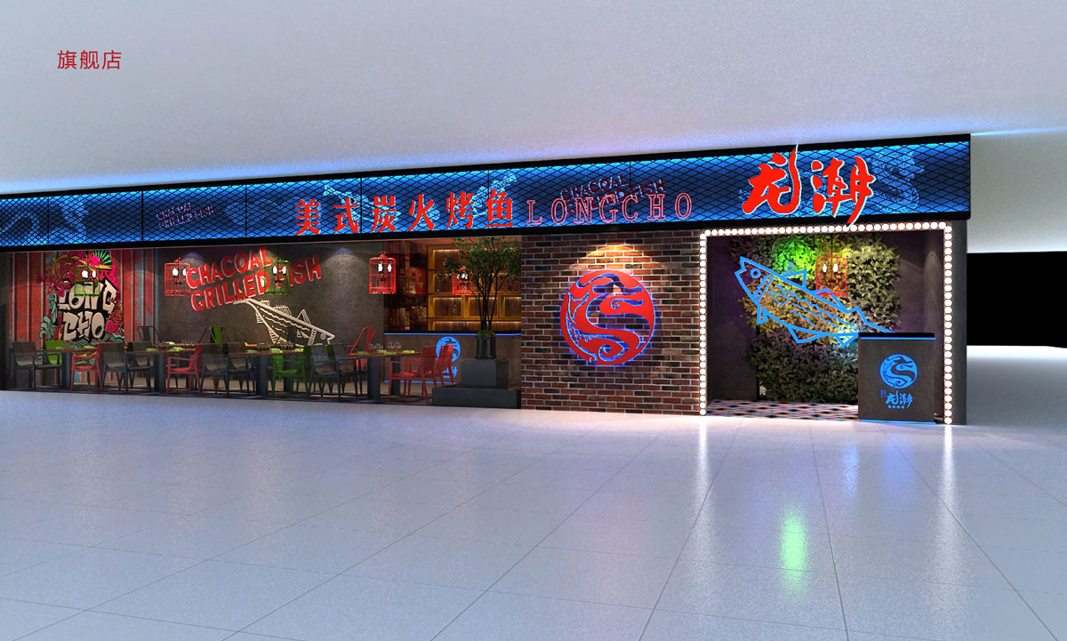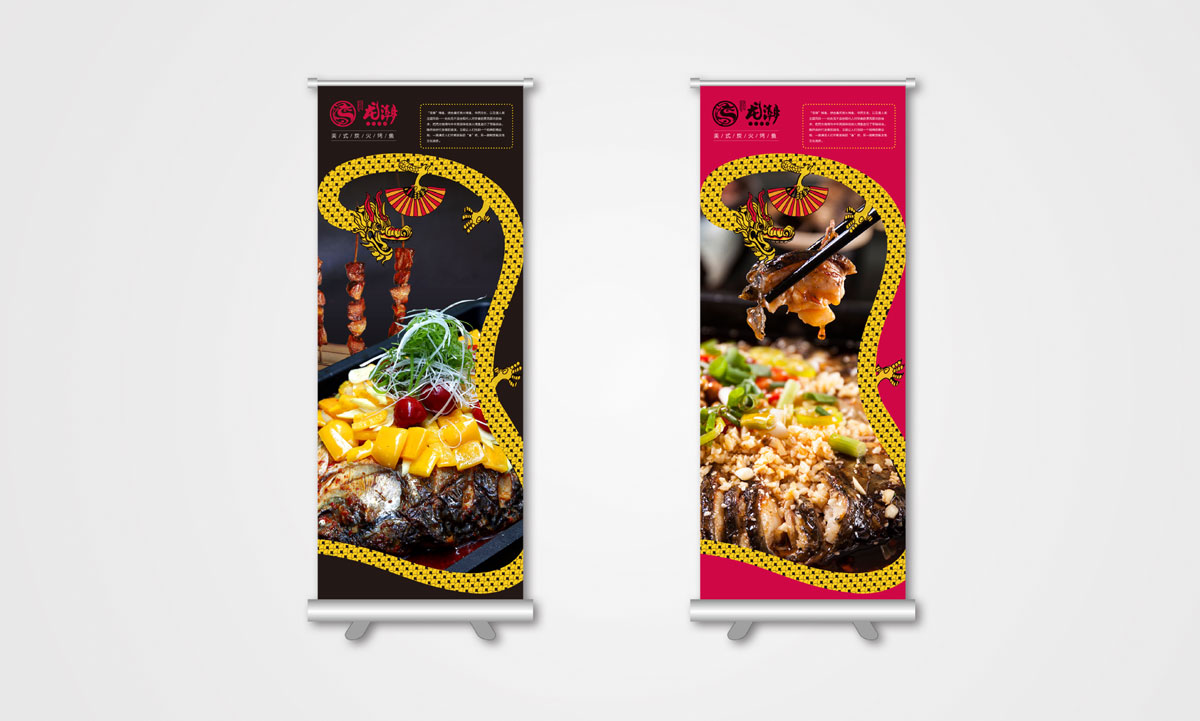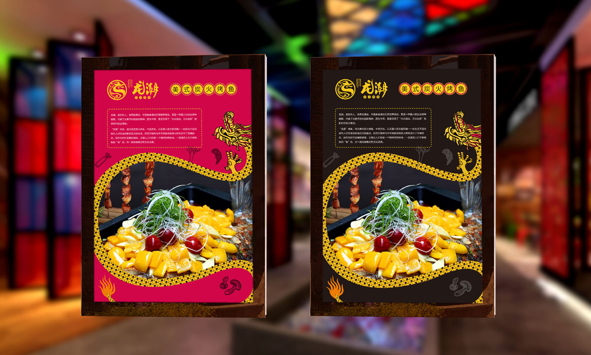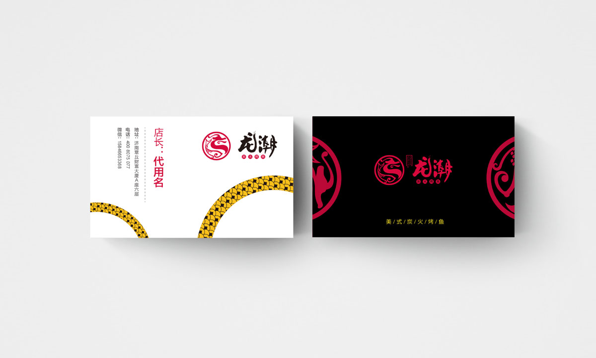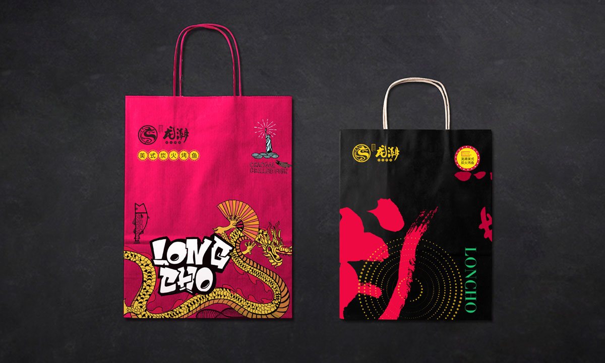龙首鱼尾玉生辉,logo设计将龙、鱼和玉的形态作为灵感来源,进行了精准巧妙的融合。将龙尾融入传统书法,使“龙潮”生动形象又具有东方神韵。在企业品牌形象建设、VI系统、网站建设及店面SI系统的设计上,将美式和东方元素进行了大量的提炼和融合,使龙潮产品的美式风格与民族特质巧妙地结合在一起,使传统和现代感在碰撞中实现统一,打造出极具唐人街文化特色的主题餐厅,为龙潮完成了全国范围内统一的整体品牌形象创意设计。