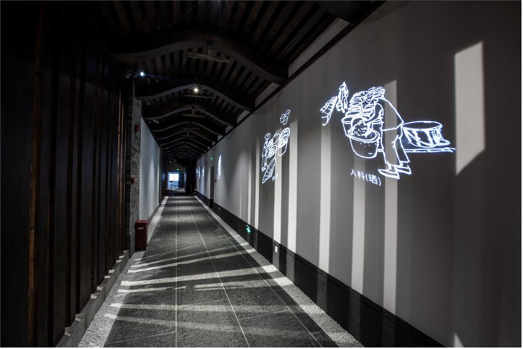 三楼内走廊让参观更加便捷,墙面上的数字投影,生动反映了酿制酱油的主要步骤。