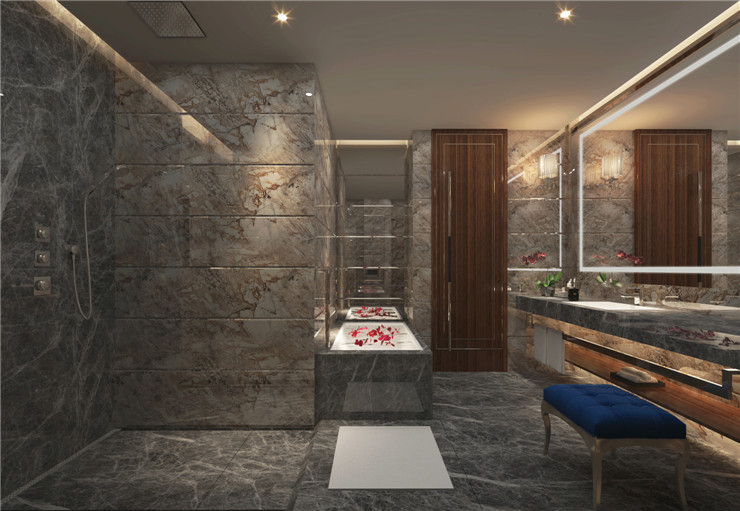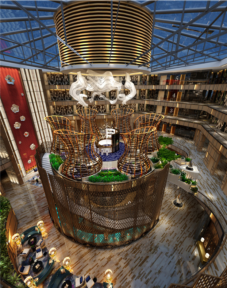 这所酒店定位于高端客群,客房建筑面积达到60平米,独特的建筑外观和大中空设计都对室内设计的档次提出了较高要求。