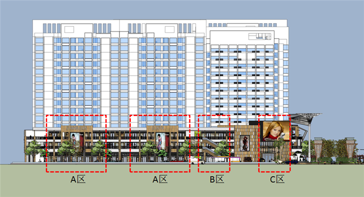 商业街与漯河世贸中心整体建筑之间的风格如何统一?过渡和衔接怎样自然?这是本案需要用设计解决的另一大问题。