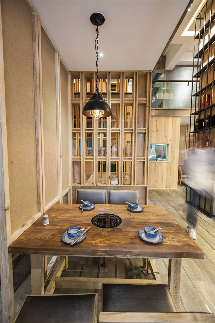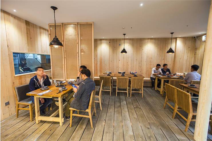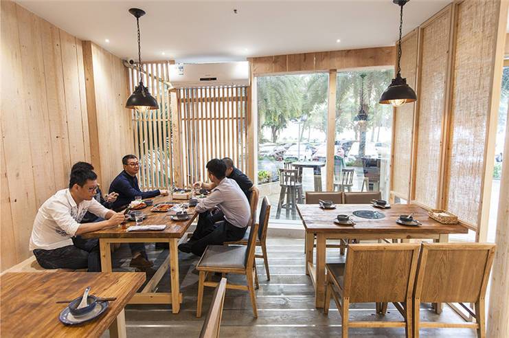 本来只是想给自己员工搞个食堂,用点儿安全油,吃点儿放心菜,好好安心工作。可开工的时候,地板全部石材、格局全部原木……四邻相继来访,这下搞得收不住啦,所以干脆一拍脑袋,改主意开餐厅算了。