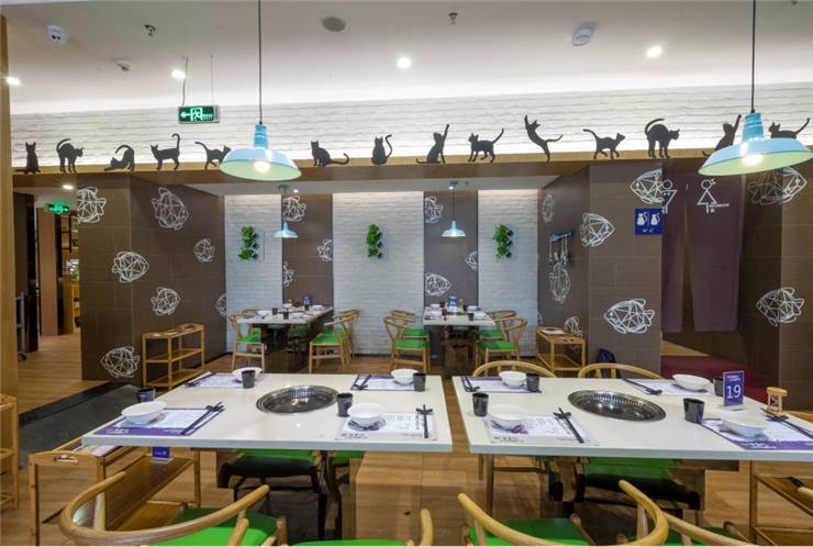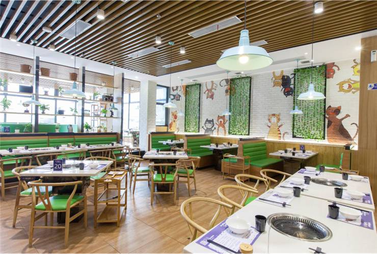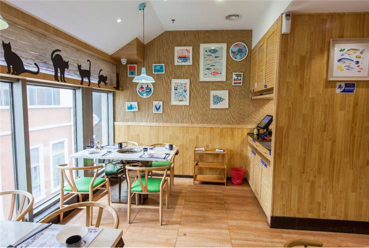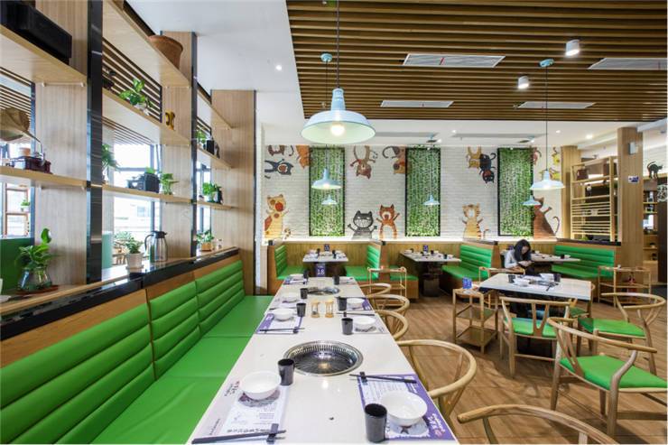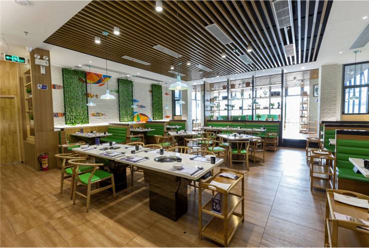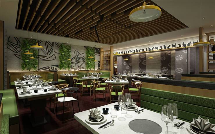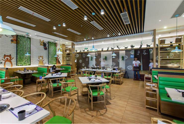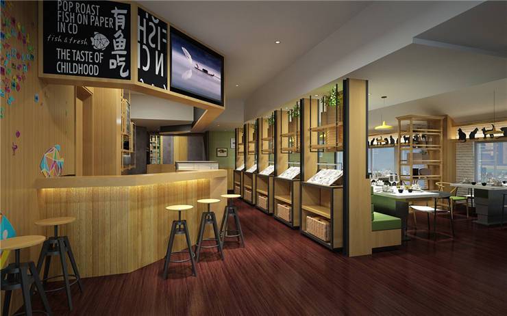 创意烤鱼餐厅有鱼吃的主打消费群体为80后、90后,设计师根据其品牌形象及定位方向倾力打造了一个青春鲜活、时尚清新的空间。