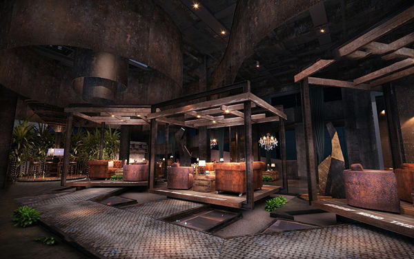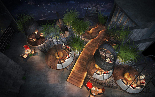 原有结构被突破,设计师通过游廊、连桥等形式将各功能区连接在一起,将阳光、空气、清新的自然引入室内,使得顾客必到之处仿佛置身于一座座美丽的小花园内,增强了顾客与室内空间的互动感。