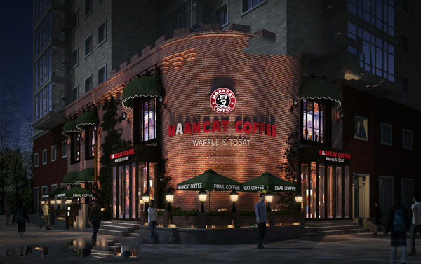 一圈圈麻绳径自缠绕在枝桠上,衍生出无穷的艺术张力。绿植生长成猫咪的造型,清新与乐趣无缝衔接。空间里柔和醇厚的木质桌椅和墙体,边边角角都洋溢着自然的气息。混凝土墙面绘制别样童趣,又见地面忽明忽暗的猫咪脚印,一个活灵活现的空间悄然绽放。顶面没有吊顶处理,一条条铁管将空间划分,支架犹如一道屏风,而柱子是天然的界限。