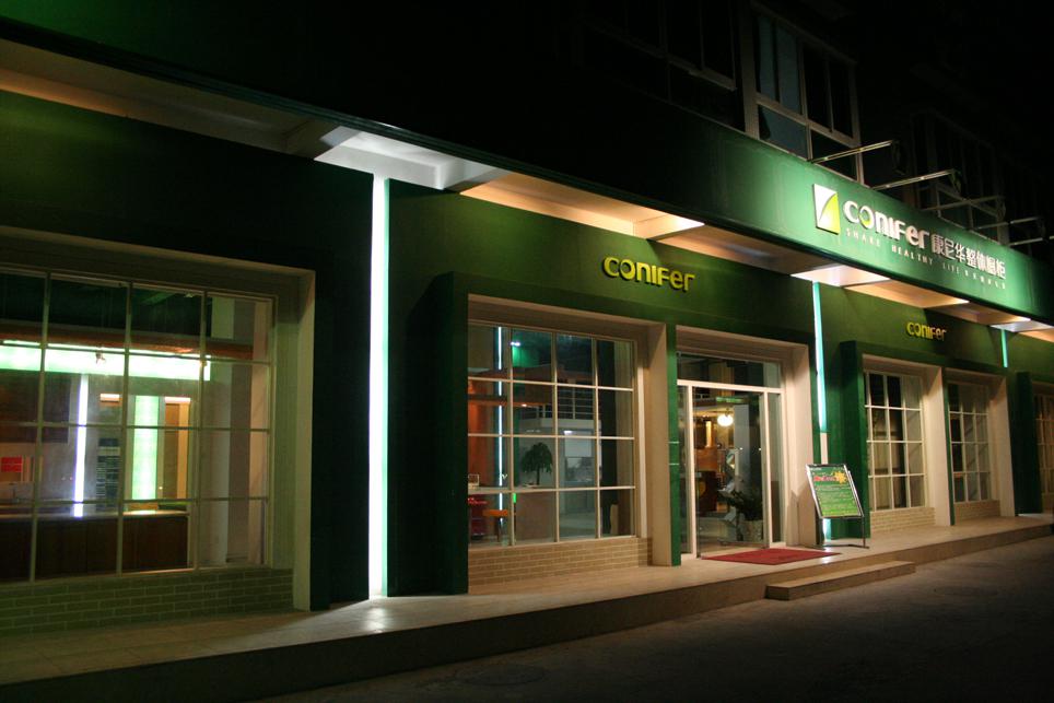 改造后室内:紧紧抓住康尼华的核心品牌优势“环保节能”,设计摒弃之前过多强调的“绿色主题”,在灰色调的基础上用光影来渲染出主题色,弱化造型,强化功能。