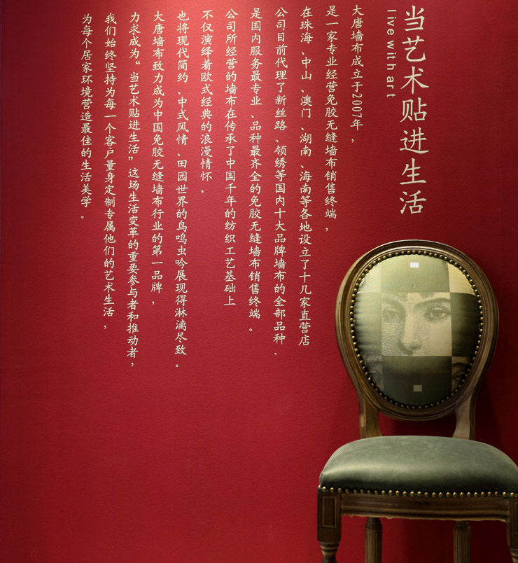 我们在终端观察,研究了大唐的产品特性及代理的产品优势之后,团队一起碰撞,为其提炼出了品牌主张——当艺术贴进生活。并在此基础上对原品牌形象进行了整体的优化。