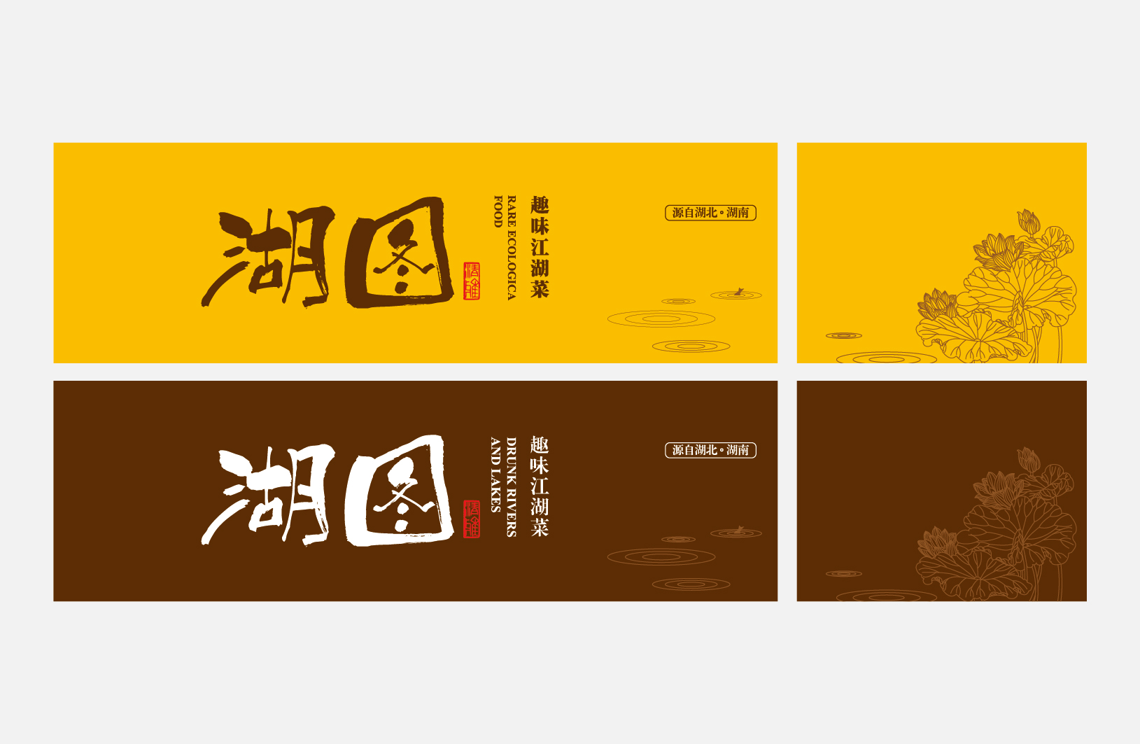 以咖啡色为主色系,以黄色、红色、黑色为辅助色系,利用极太明朝字体进行变形创作,“湖图”由“糊涂”象声创造而出,蕴含江湖味道。