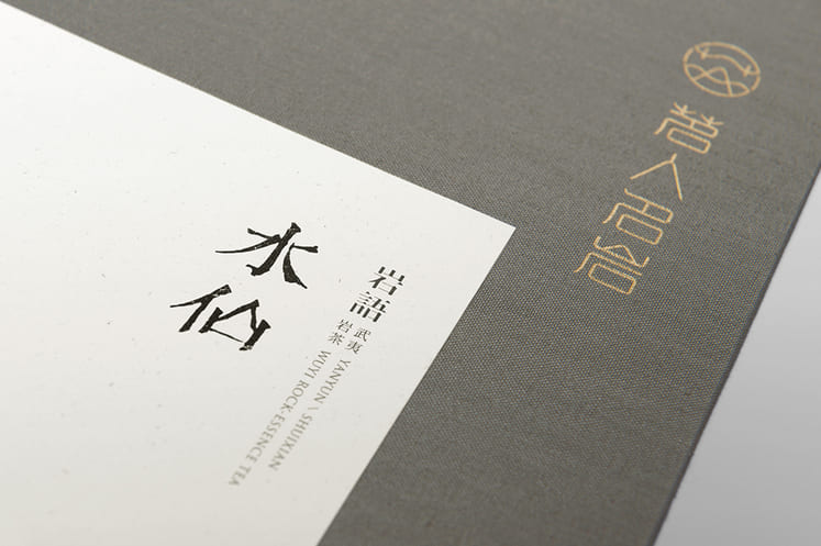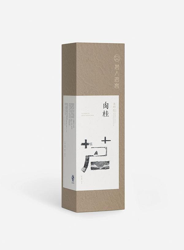 茗人名岩-是武夷山的一个岩茶品牌,“茗人名岩”与“名人名言”谐音,“茗人”指的是茶人,“名岩”指的是岩茶的生长的地理环境特点。由于谐音名人名言的原因,我们把茶包装的系列名命名为与语言有关的名称“茗吟”和“岩语”。岩语系列:以山岩的形态设计了岩字,山岩契合了岩茶的生长环境特征,同时山岩上的岩刻和中国传统线装书的书写框的结合,更契合了谐音名人名言,仿佛在那青山绿水间茶人在娓娓道来关于岩茶的故事。