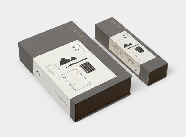 茗吟系列:运用了古拓片的语言形式设计了茗字,拓片材质为石质也与“名岩”产生关联,拓片承载着历史文化等的信息,内容上可与名人名言产生关联。茗人名岩标志和标准字上我们也突出了茗的的草字头和岩的山字头,一草一茶,一山一岩。山水和茶树环绕与天地之间,相互依存,相得益彰。