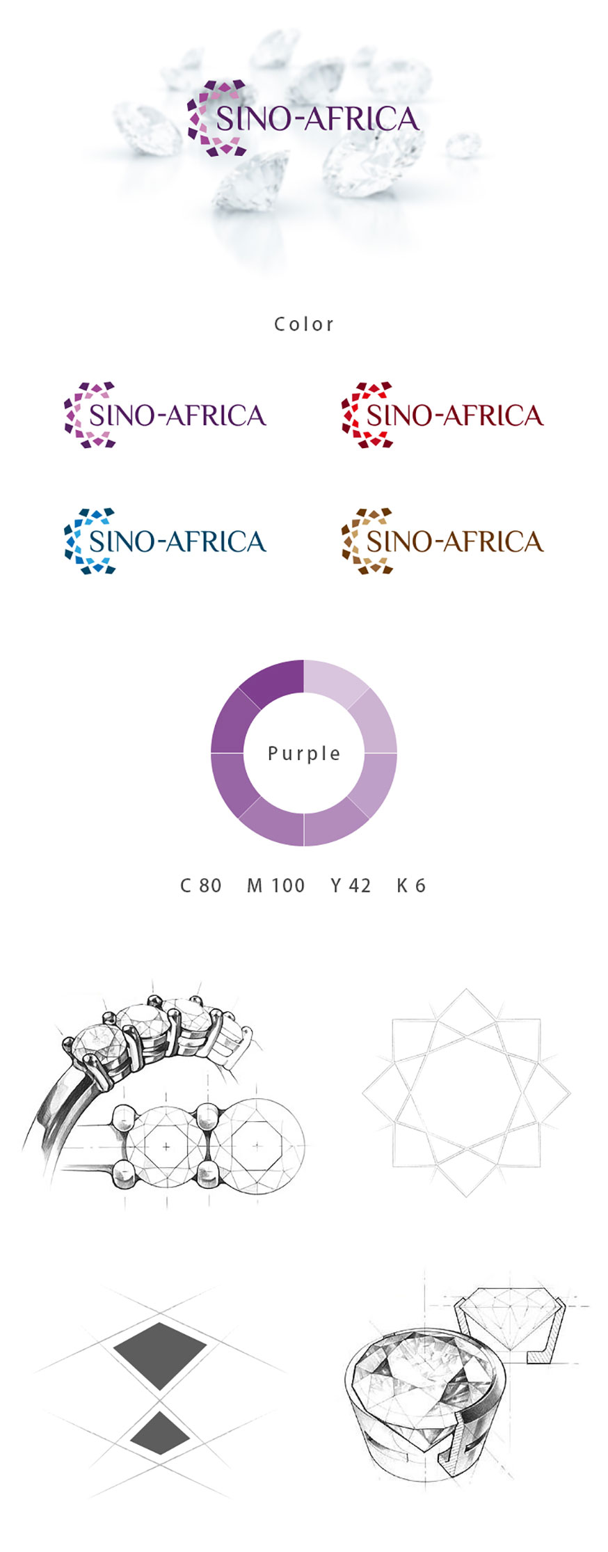 Sino-Africa 的LOGO灵感,来源于钻石切割的工艺。我们的设计师通过手绘钻石,然后提取切割面的方式,提