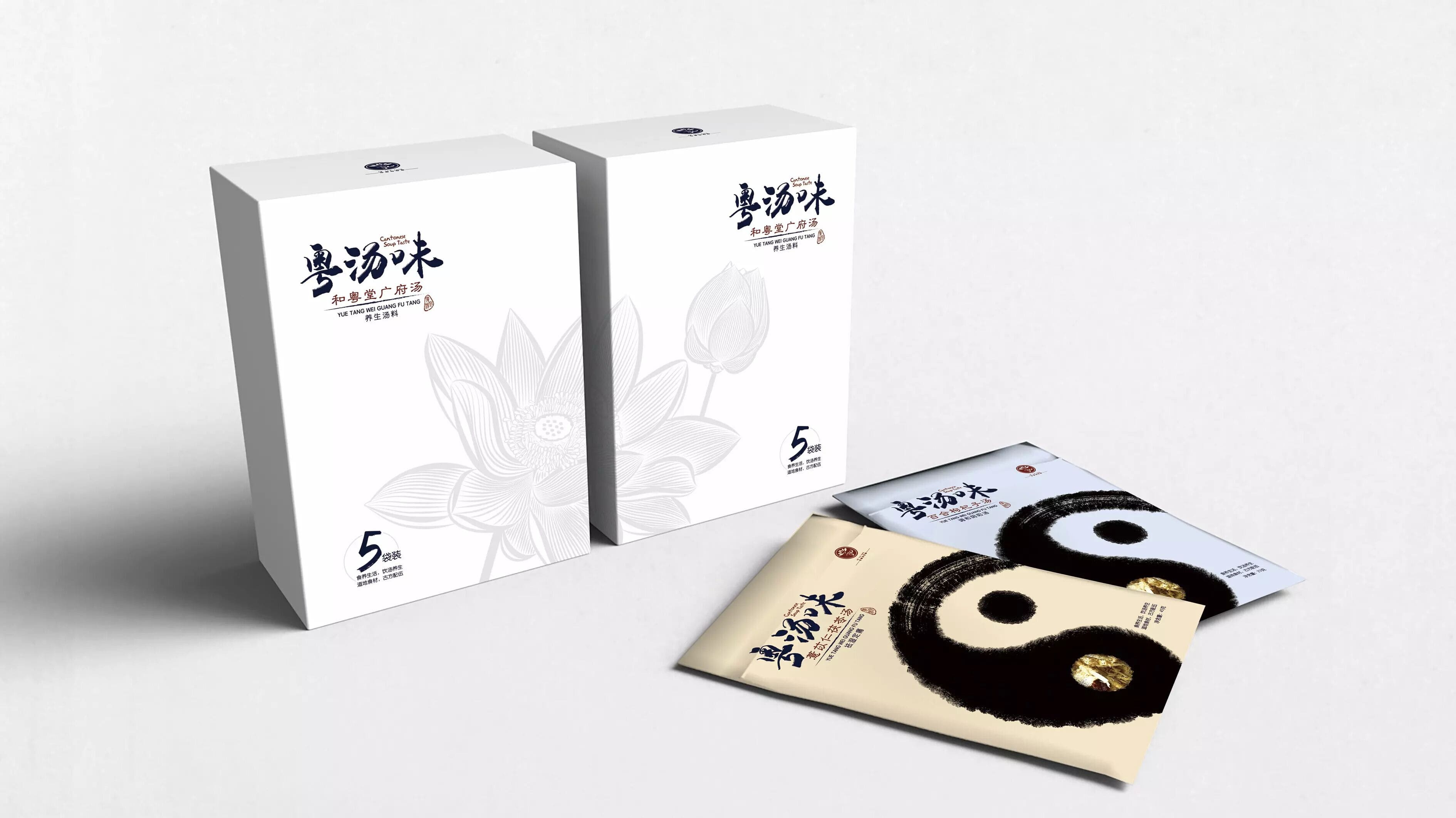 既然是传统养生产品那么就少不了中国元素,太极和荷花,整体风格使用了中国风元素颜色也是比较素,这更能显示包装的市场定位!
