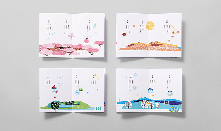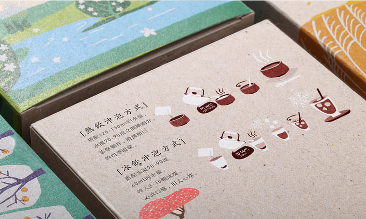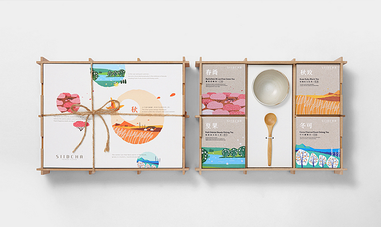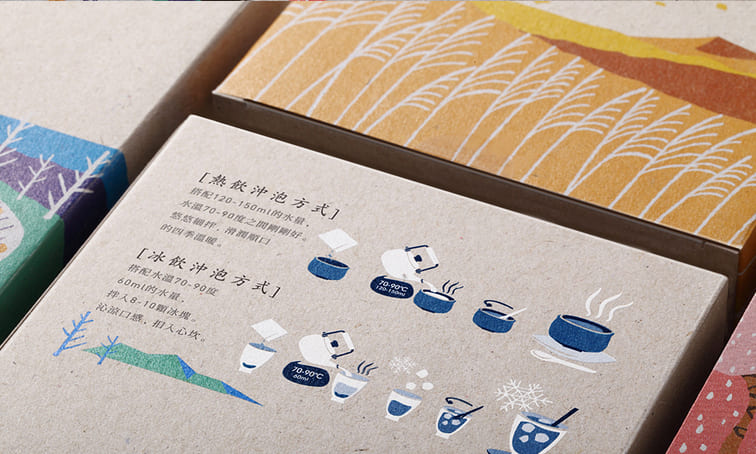 吾谷茶粮擂茶茶叶四季礼盒包装设计插画设计