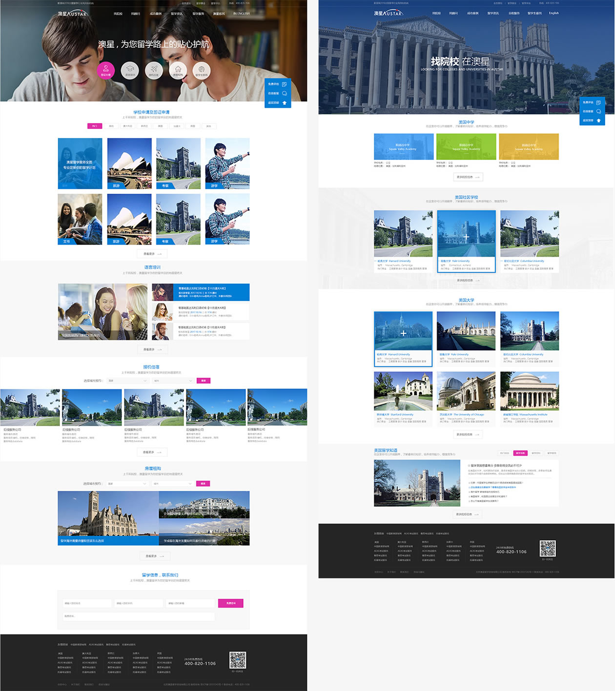 由于海外留学市场竞争较大,通过建立留学网站不仅可以帮助用户直接网上查找留学信息,也可以整合线上线下一体化,实现最大化营销