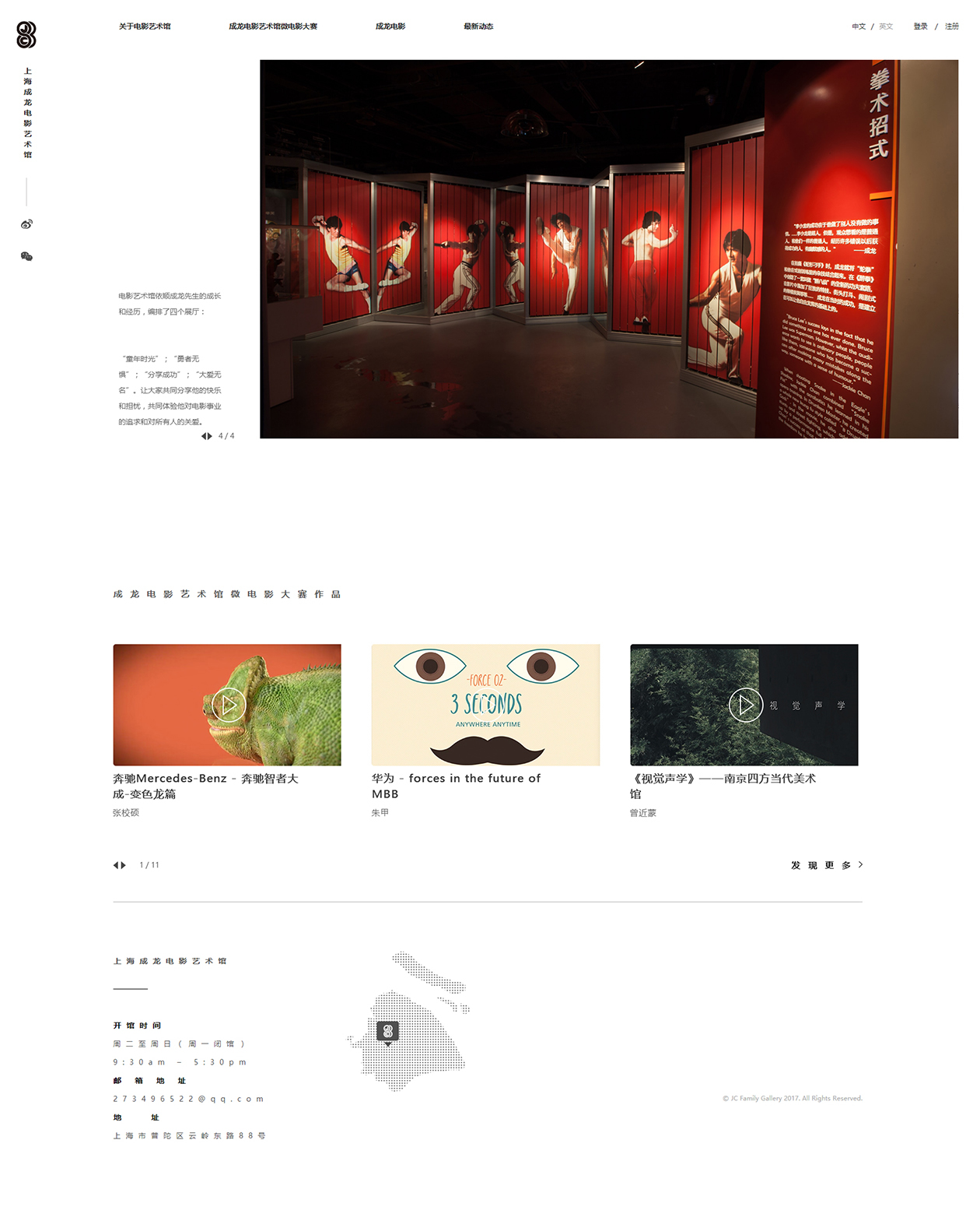 希望通过网站向用户介绍成龙电影艺术馆以及近期的活动内容,鼓励浏览者前往参观