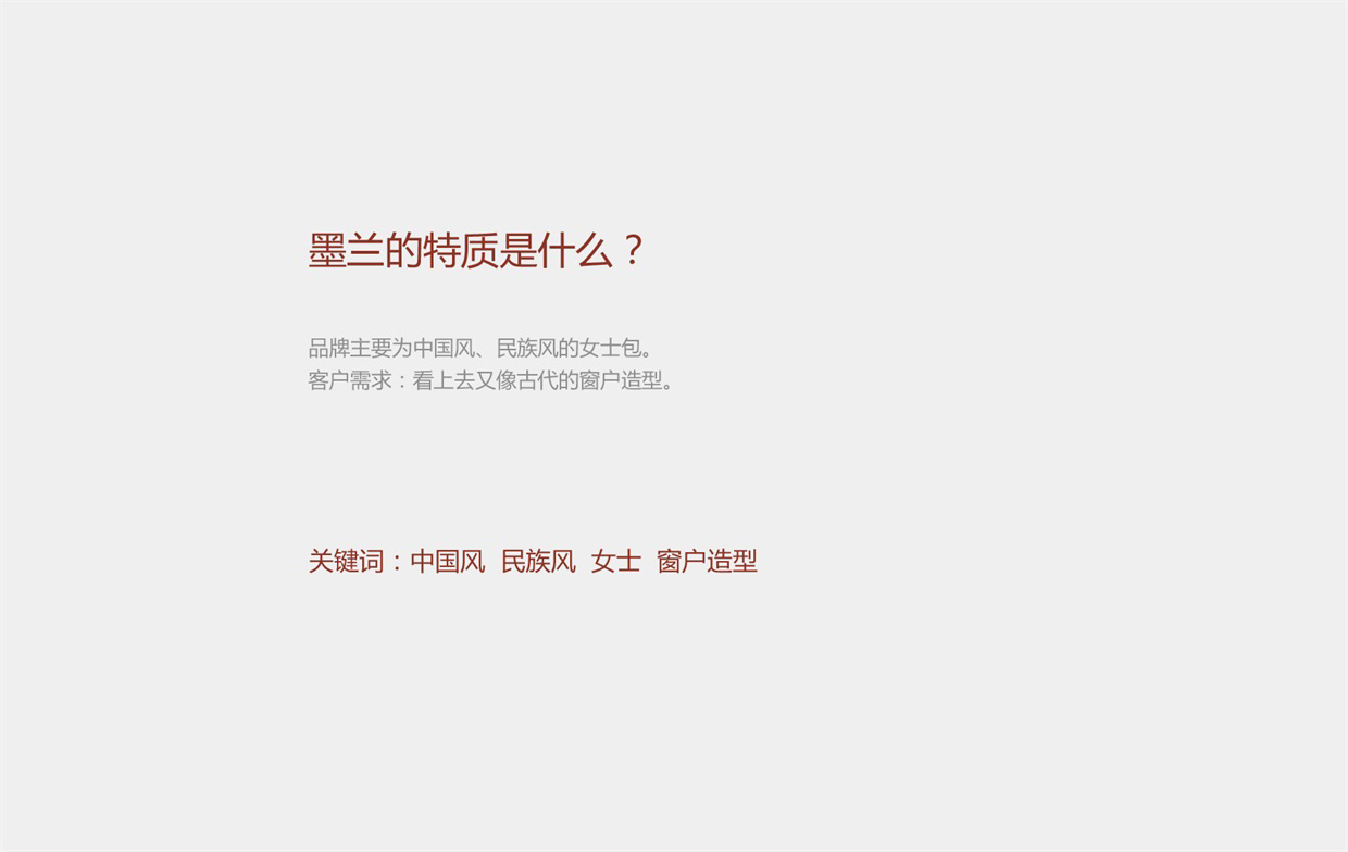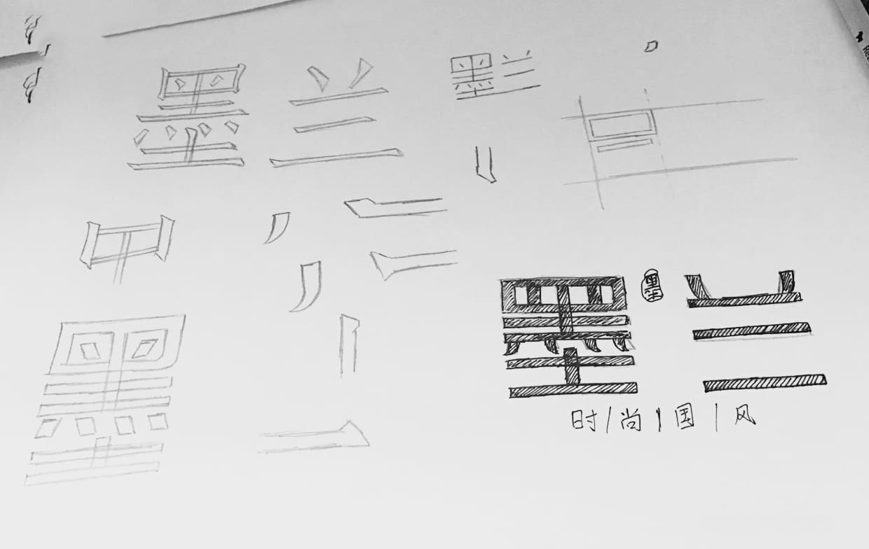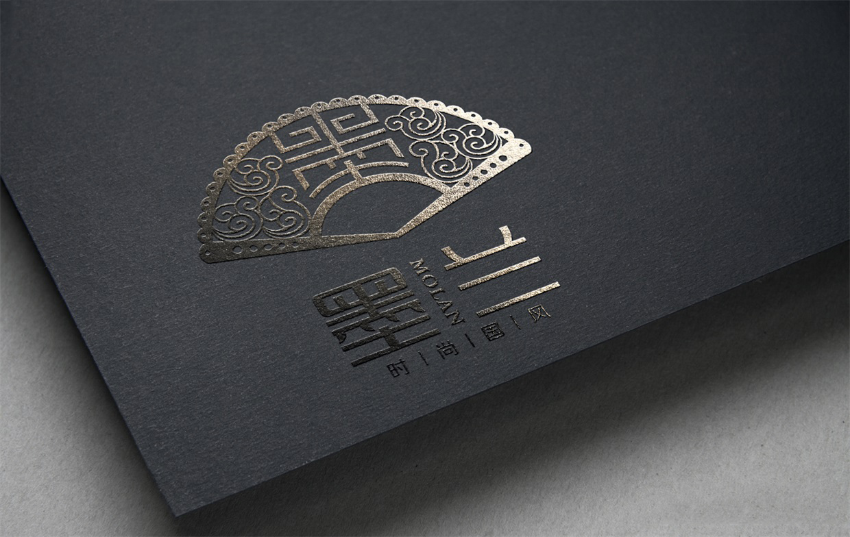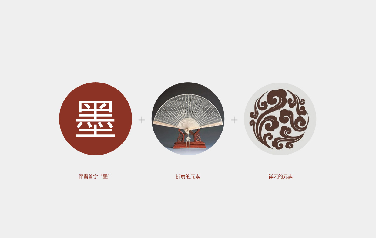 标志设计的风格贴近中国风,体现时尚国风的品牌理念。在标志的元素选择上,我们在众多中国符号中挑选了最能够体现中华文化的汉字“墨”来作为标志的核心主体,其次是折扇与祥云作为辅助。