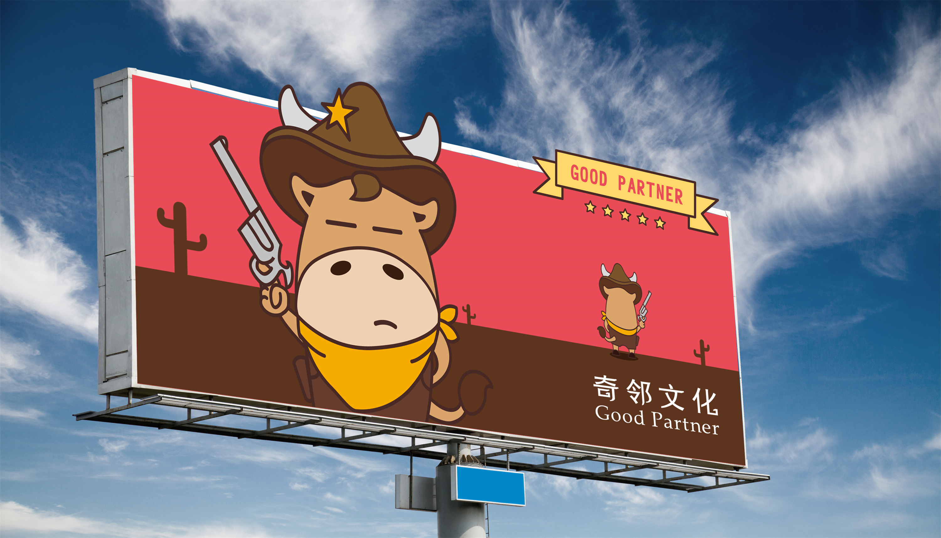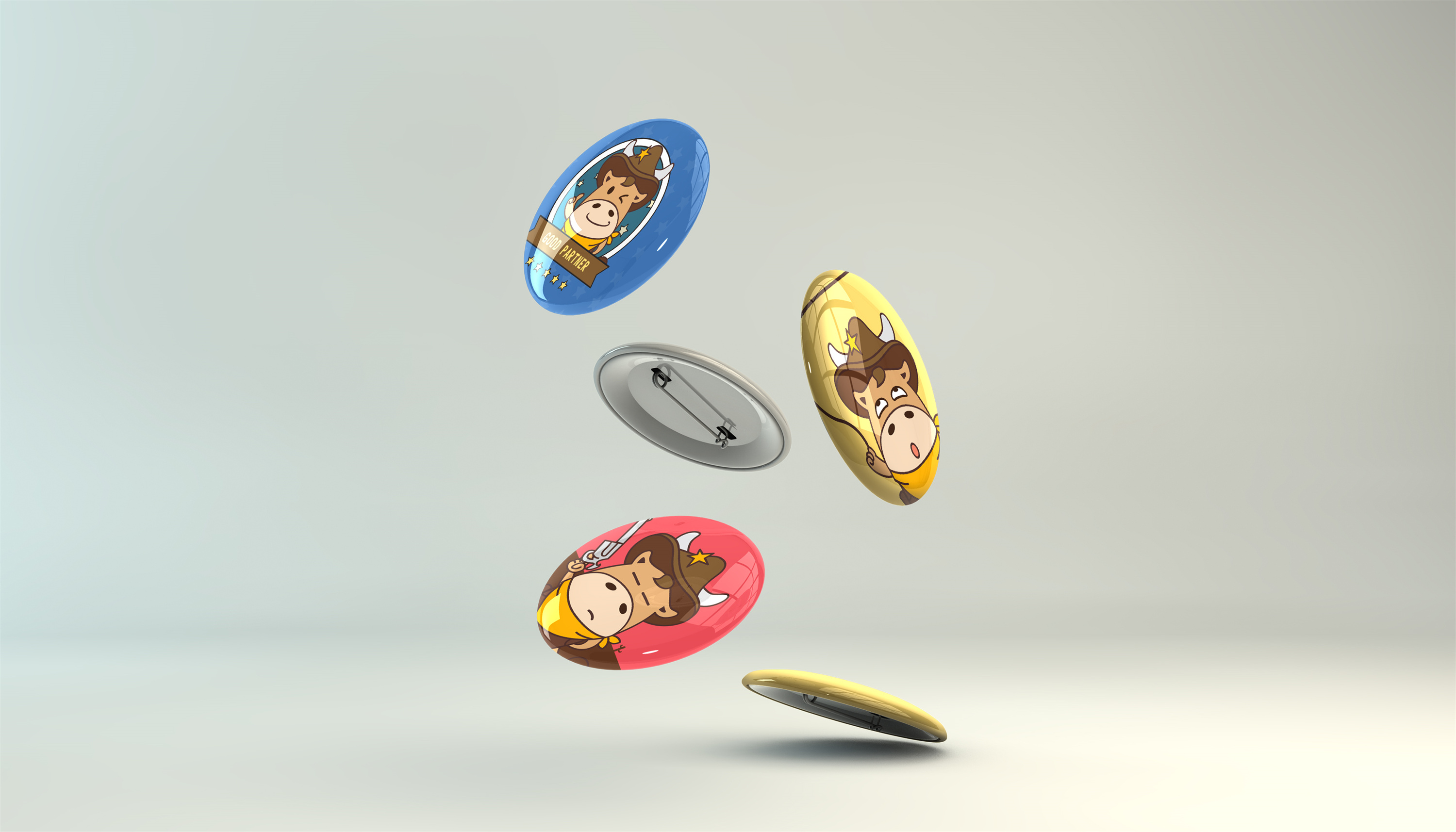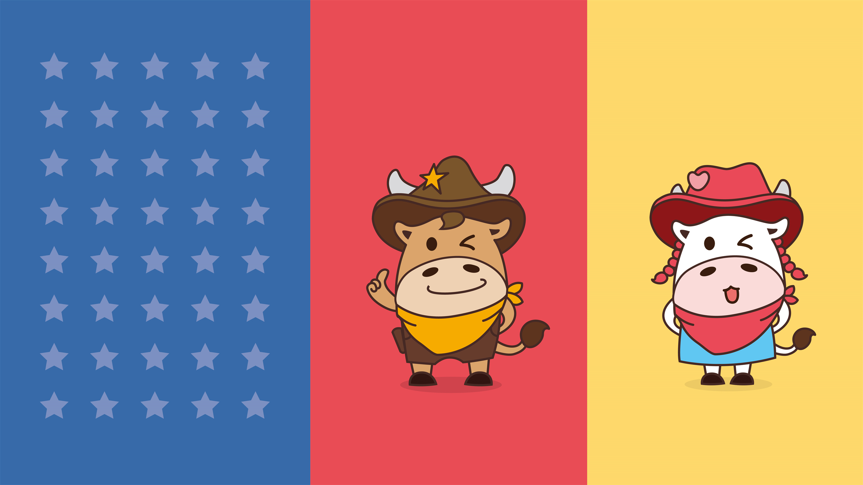 思路2、我们将吉祥物设计为顽皮的小牛+牛仔形象。在西方社会,牛仔文化盛行,牛仔也是一种受人尊敬的职业;在中国,牛也一直被认为是勤劳、踏实、百折不挠的动物,是农业社会发展的象征;在印度,牛更是被奉为“圣兽”。故此,选定牛仔为贯穿中西方的动物非常合适。