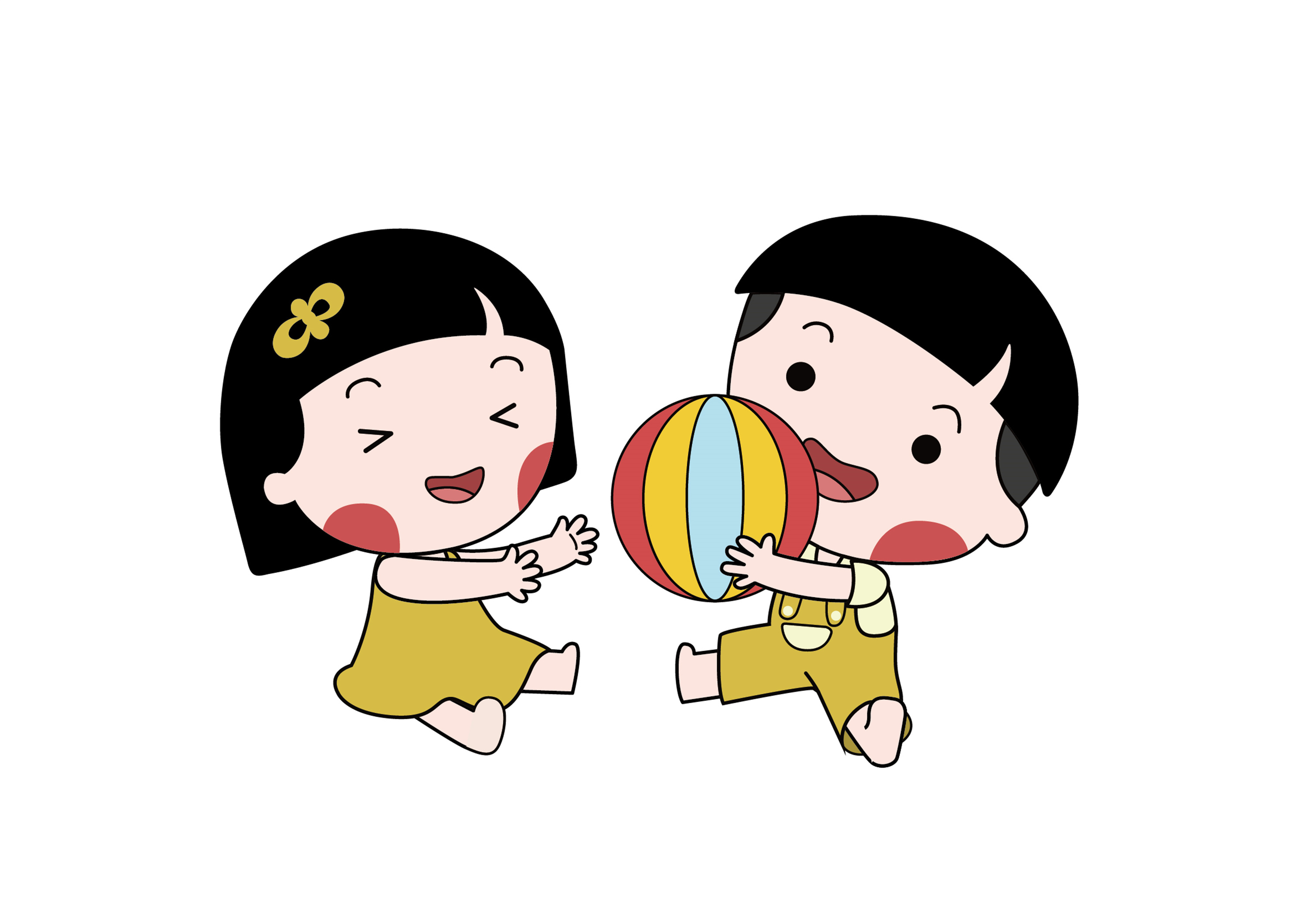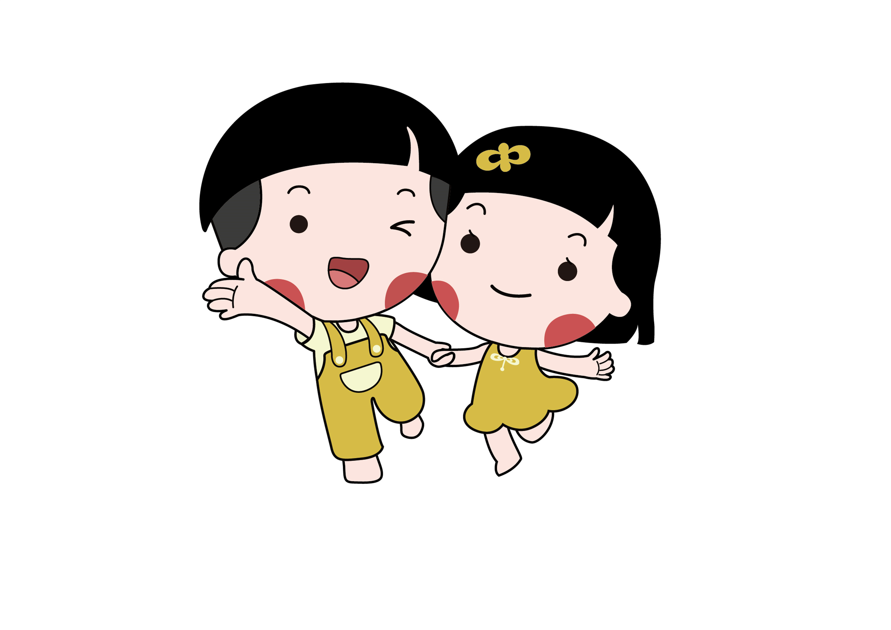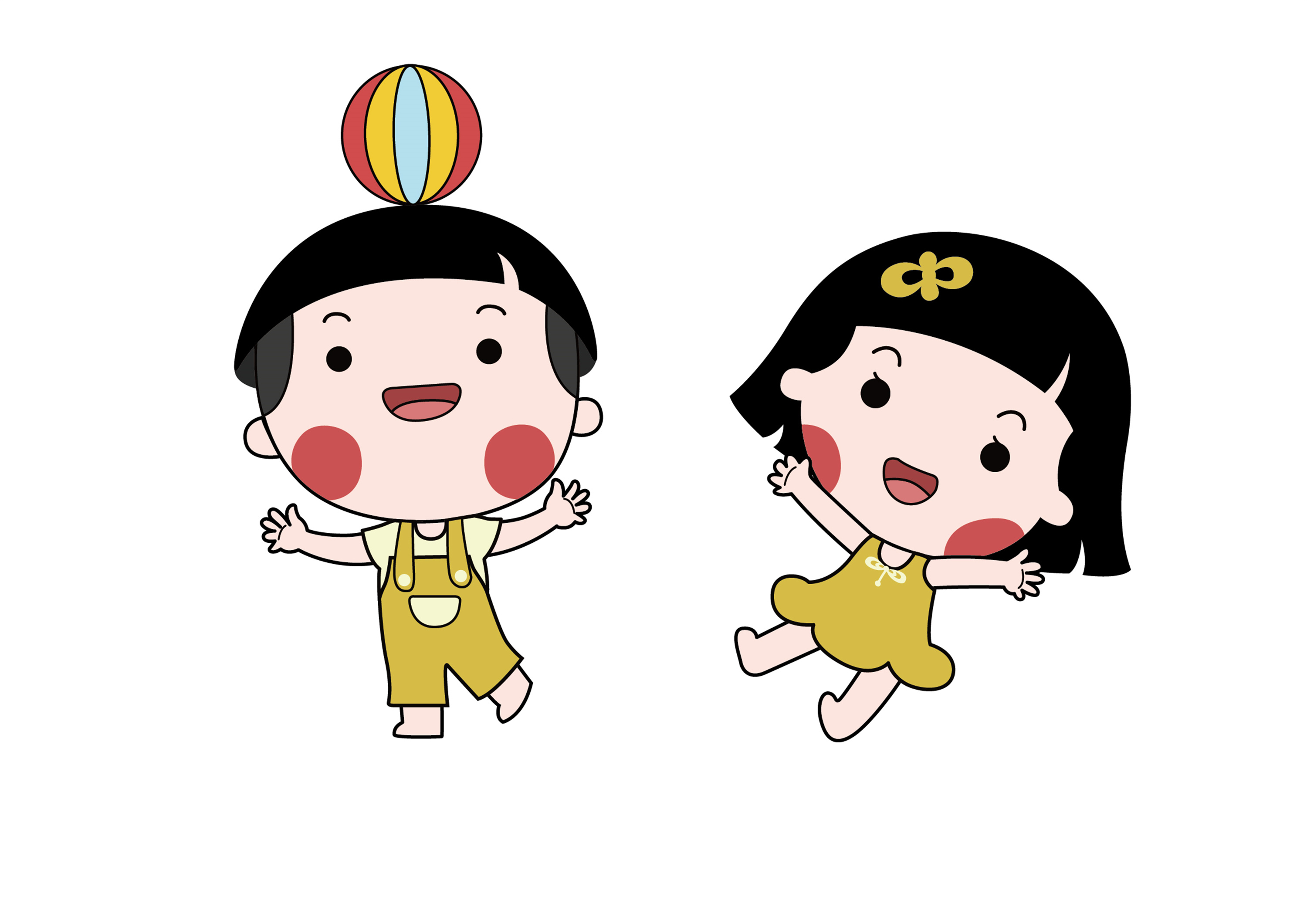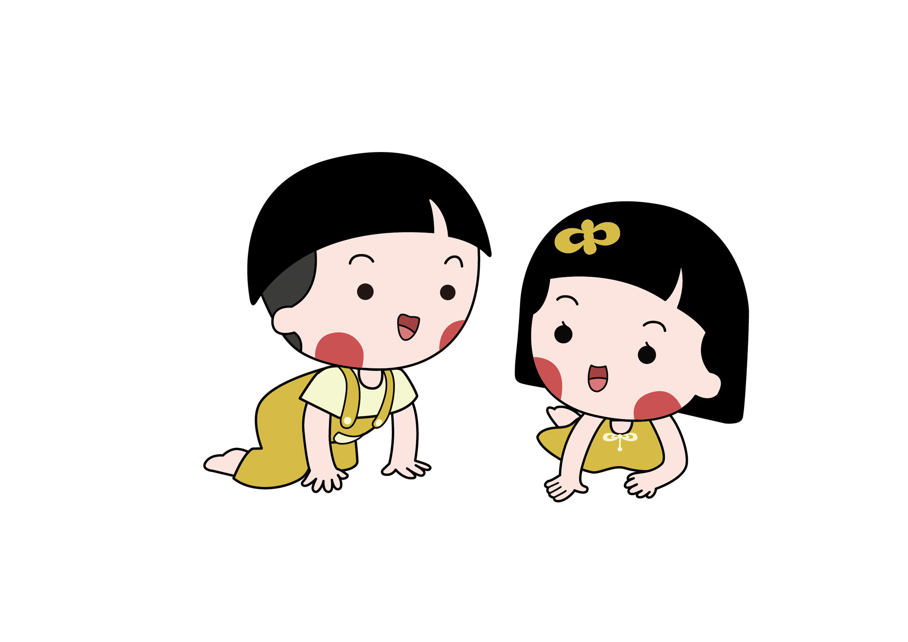 思路2、在创意设计上,我们将吉祥物设定为男女两个宝宝形象,并赋予了吉祥物齐齐的刘海、黄色的衣服,造型简约可爱、呆萌,同时又有很高的辨识度。
