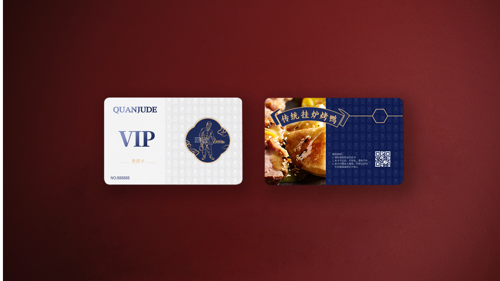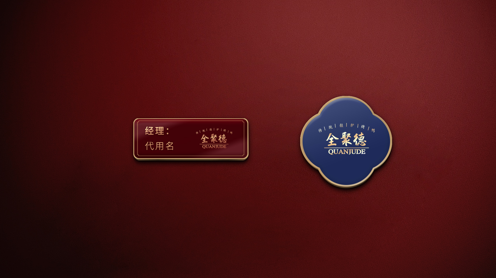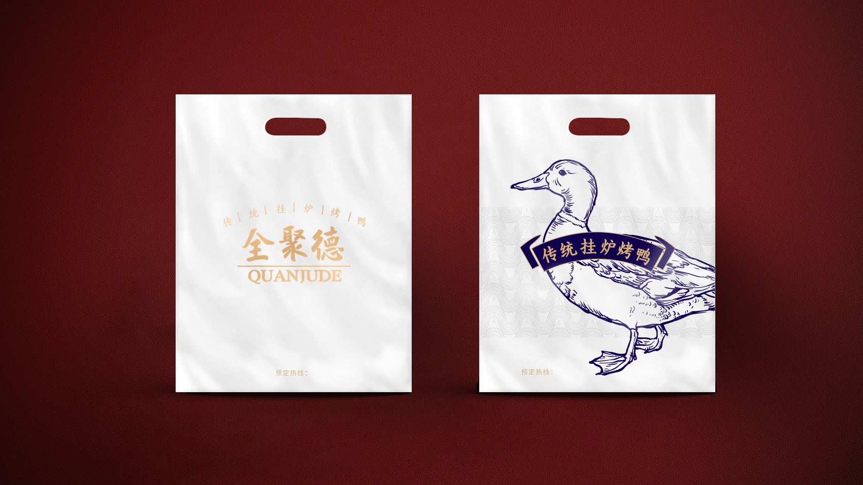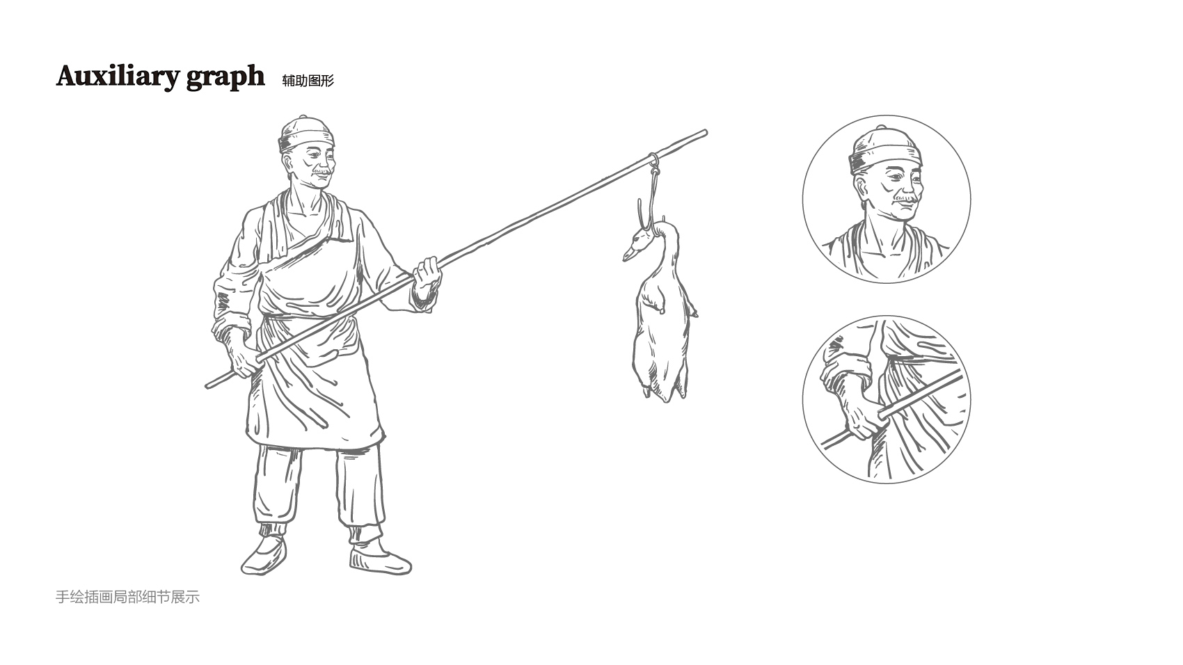 品牌设计整体视觉采用中式复古风格,结合中国六边形、梅花形窗花、牌匾边框,再融合传统楷体与大宋字体,呈现全聚德国字老字号的高端品质与浑厚的文化底蕴。辅助图形通过插画线描的表现方式,展现全聚德烤鸭的制作手艺过程。