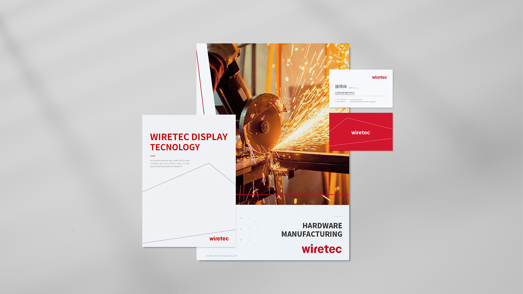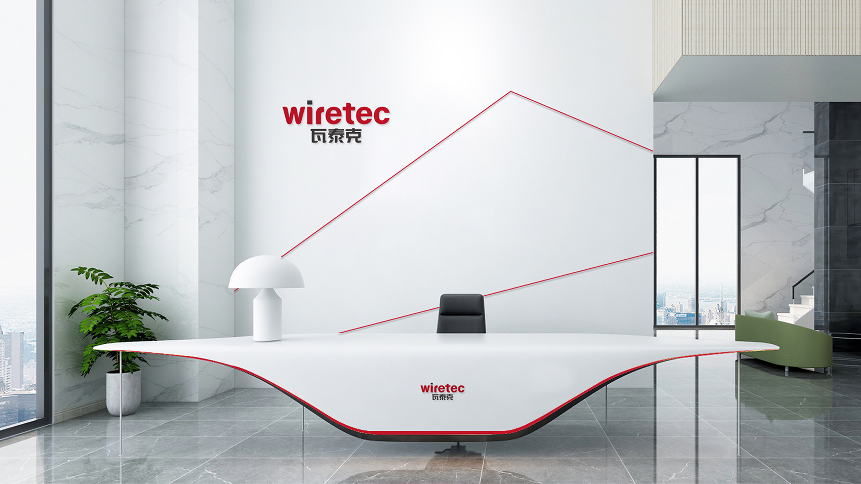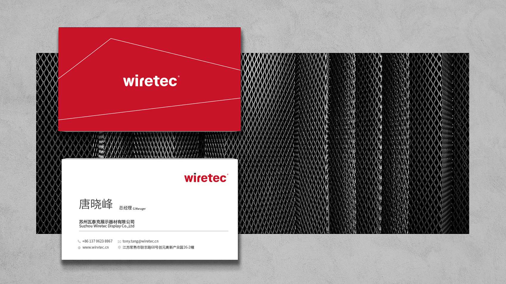 品牌核心标志设计以品牌名Wiretec字体作为主打设计,英文字体浑厚有力体现制造业的行业属性,在局部进行圆角处理,让字体刚中带柔。品牌色采用力量感的红色及沉稳的经典黑,结合简洁的线条辅助图形,在VI视觉应用通过点、线、面,构成几何空间的立体透视,品牌视觉简洁而富有艺术现代美。