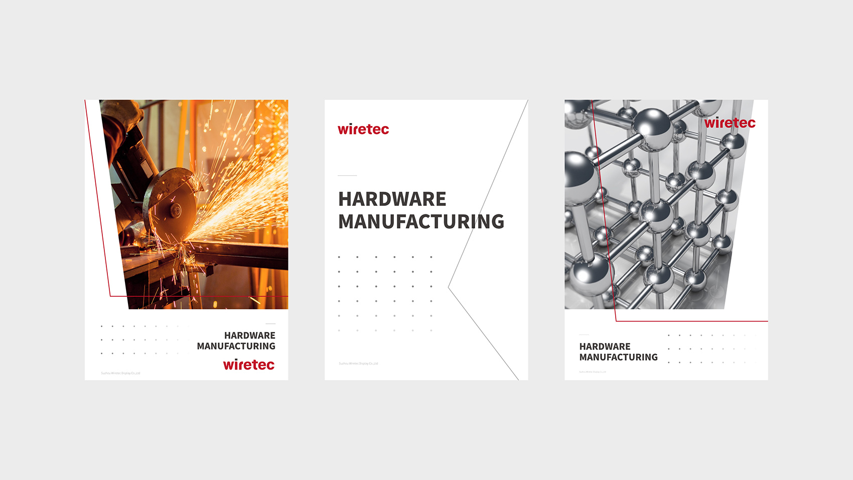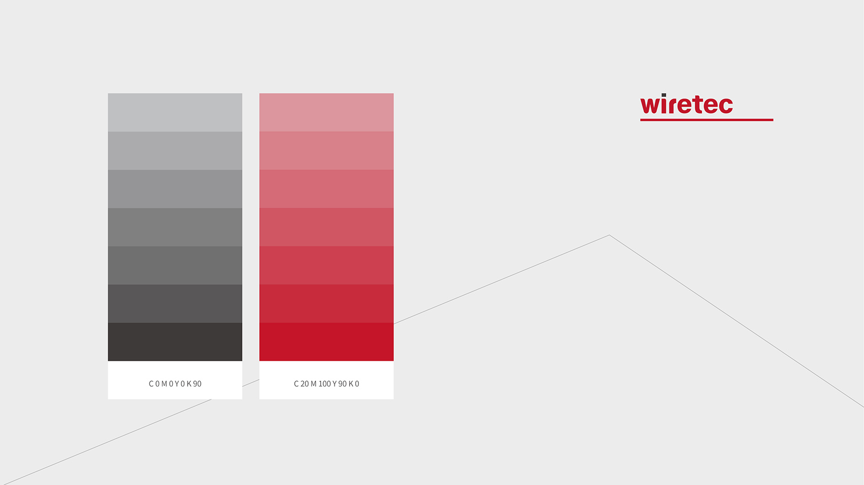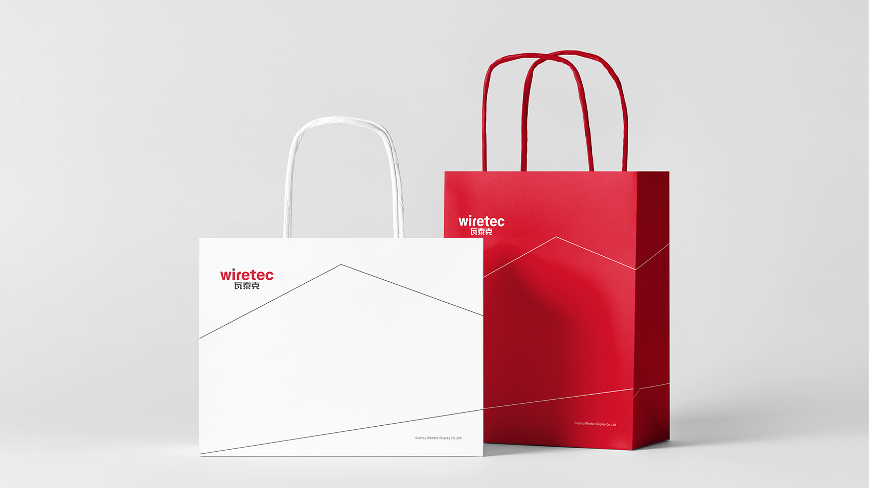 品牌核心标志设计以品牌名Wiretec字体作为主打设计,英文字体浑厚有力体现制造业的行业属性,在局部进行圆角处理,让字体刚中带柔。品牌色采用力量感的红色及沉稳的经典黑,结合简洁的线条辅助图形,在VI视觉应用通过点、线、面,构成几何空间的立体透视,品牌视觉简洁而富有艺术现代美。