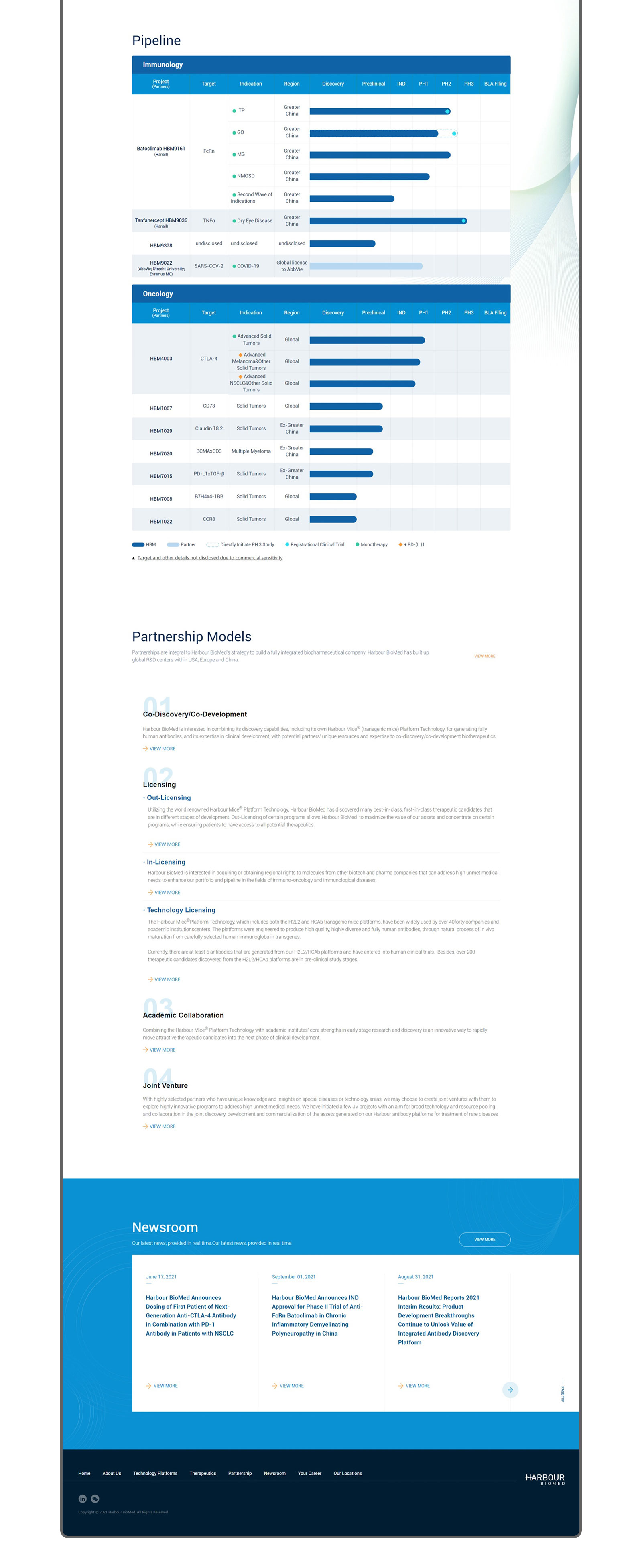 服务内容 : Harbour BioMed is a global, clinical stage biopharmaceutical company committed to the discovery, development and commercialization of novel antibody therapeutics in the areas of oncology and immunological diseases to address unmet patient’s needs. 创作日期 : 2021-11-27 10:50:51