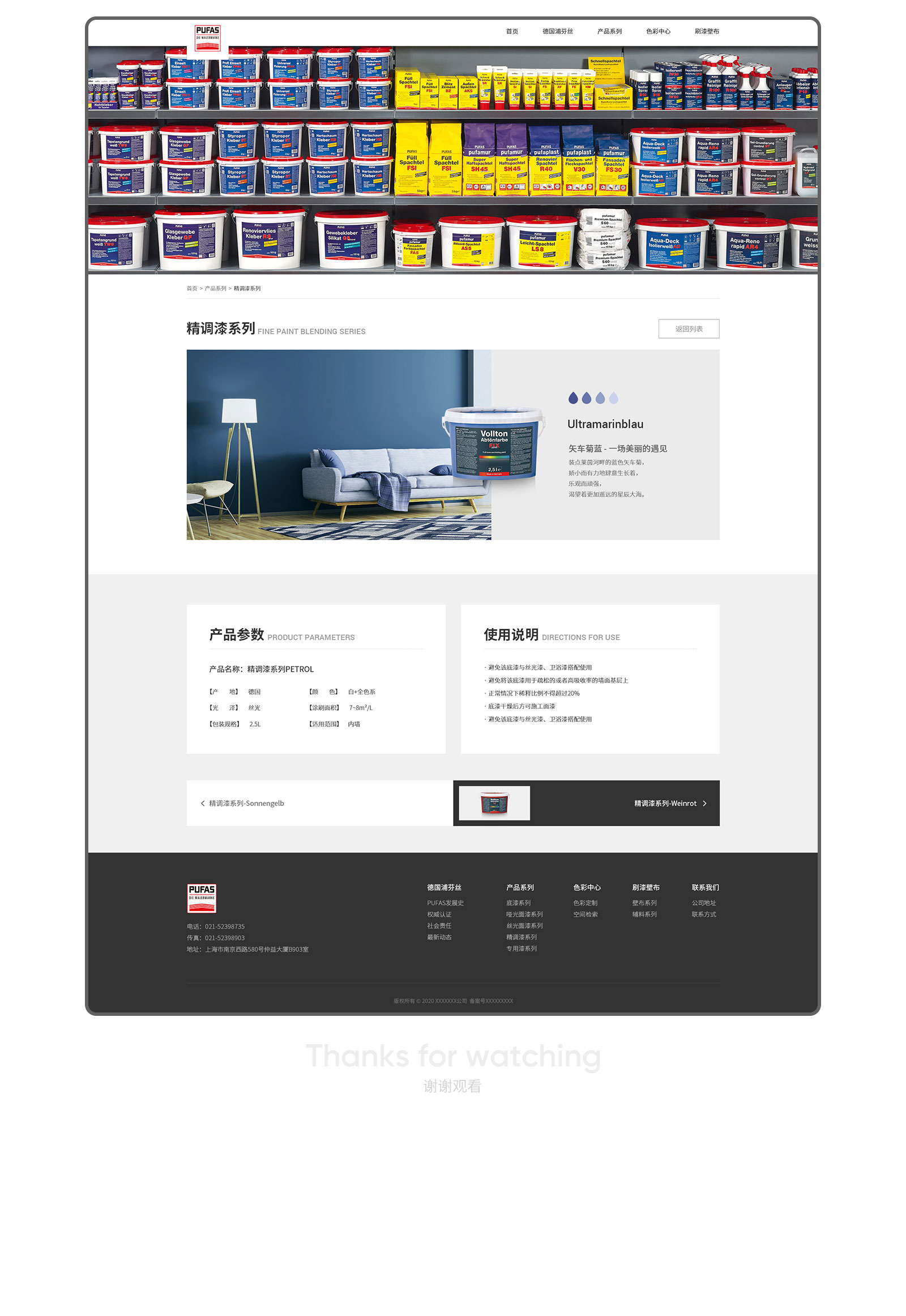 德国PUFAS浦芬丝作为PUFAS Werk KG公司旗下品牌,通过建立并升级网站将产品的研发、生产与销售各大环节通过站点充分展现,通过网站的建立联通全球50多国,每天通过14个装卸平台将1000多吨货物发往世界各地。