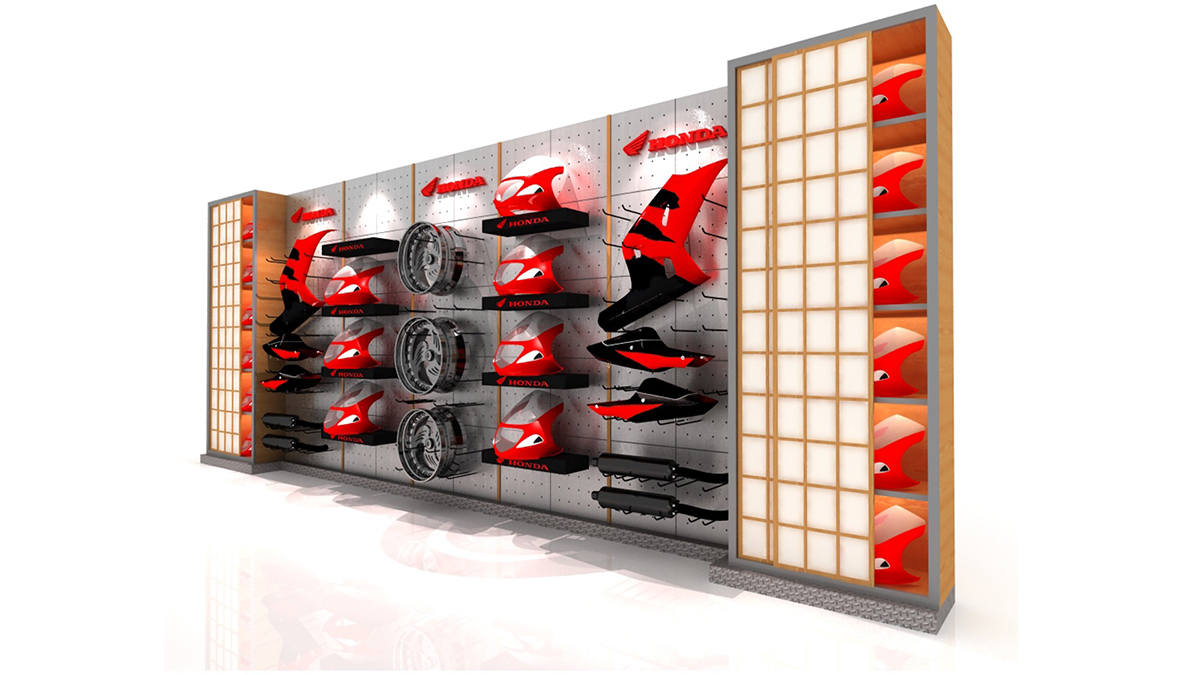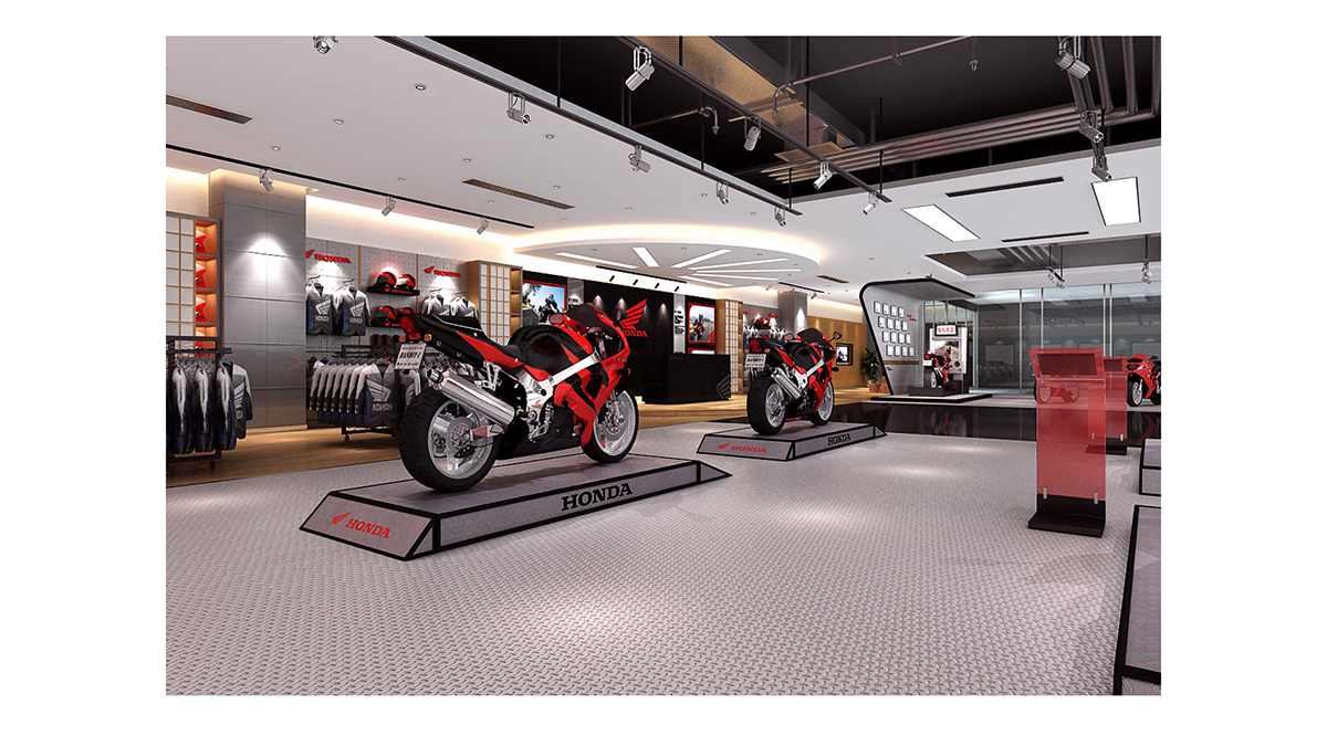 1、将本田摩托车自有的标志性红色作为店铺的视觉主题色进行设计。