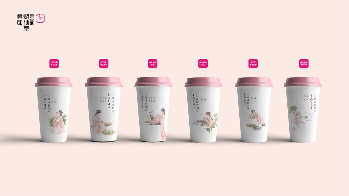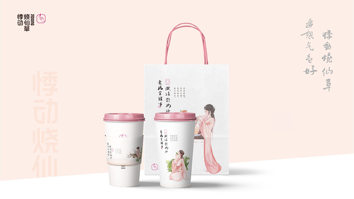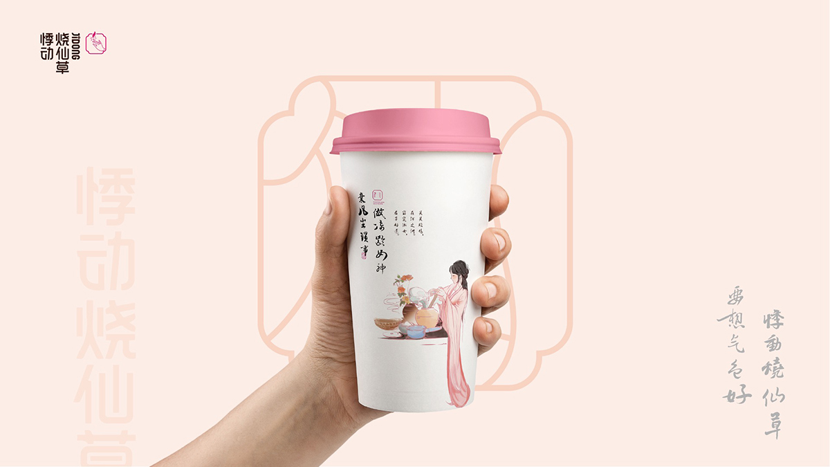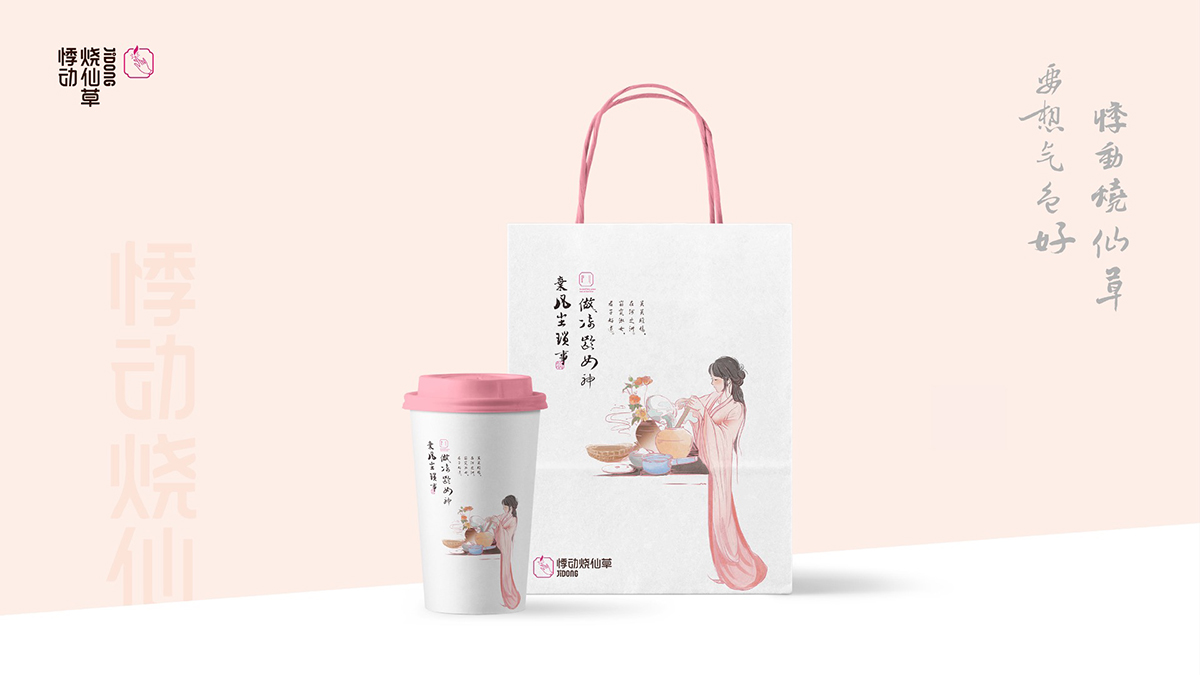 1、“仙”字结合窗棂设计作为品牌的超级符号,玫粉色作为视觉锤,可记忆性和辨识度都大大提升。