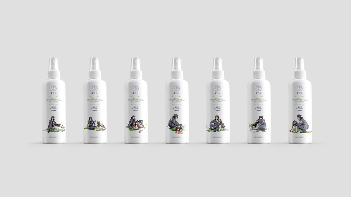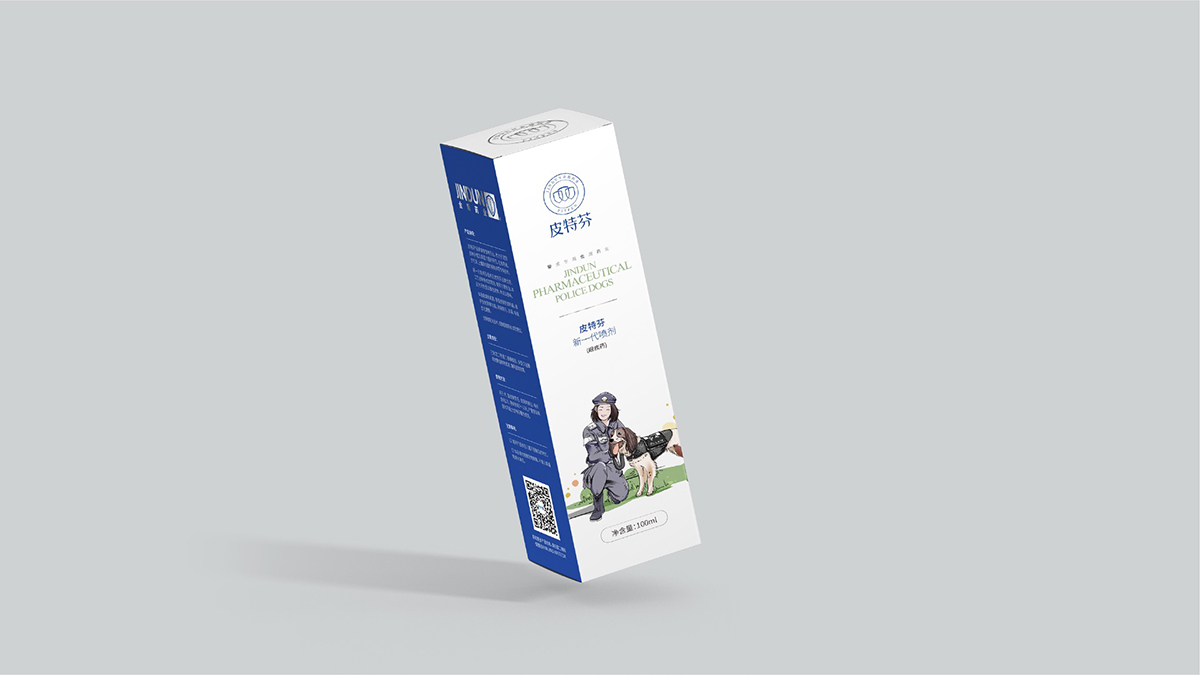 2、焦点包装—如何在饱和市场中突围而出,在众宠物药市场走出差异化,用红十字形来突出医药专业。警犬形象则是强化了焦点语言“警犬专用”这一特性