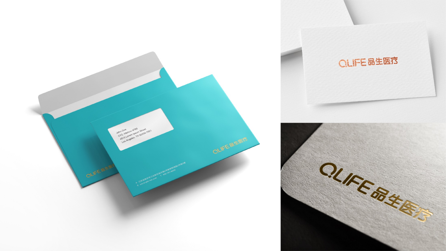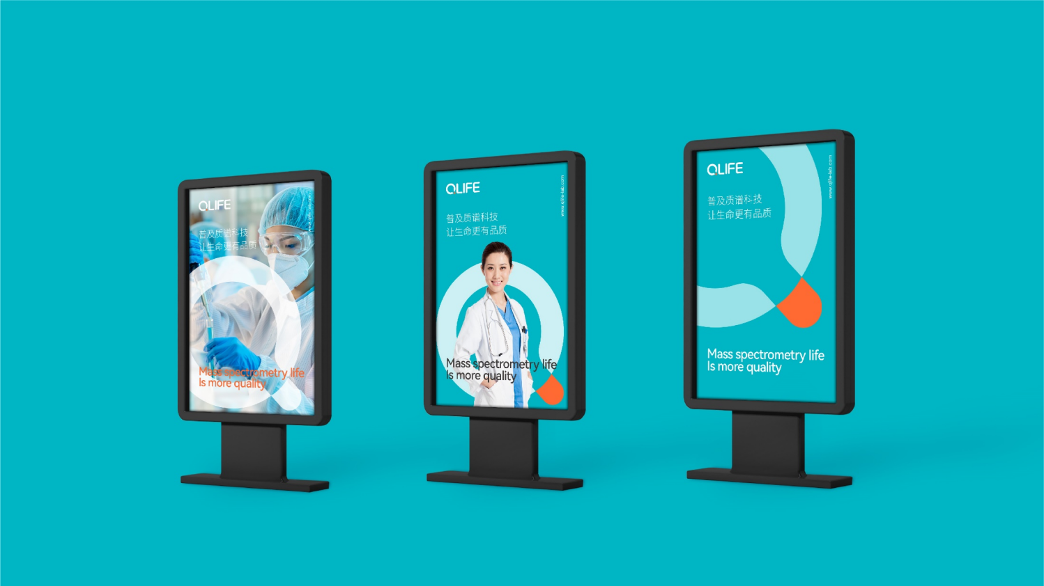 以象征科学、智慧、科技的蓝绿色作为主色调进行创作,将科技感与服务性相结合,展现出公司的整体品牌调性。 以Q进行变形加工,作为品牌的超级符号,增强了企业的记忆性与活力。