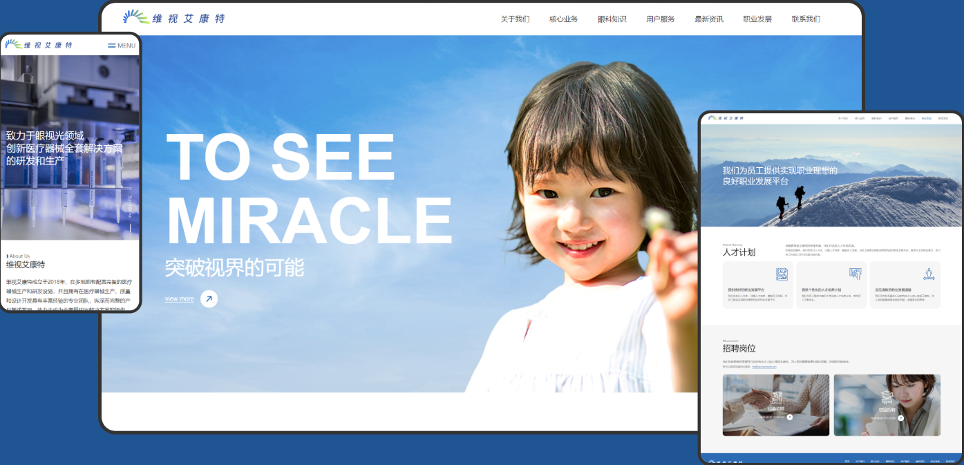 维视艾康特官网以深蓝色为主调,辅以淡白、黑、白三色,彰显专业与科技感。色彩搭配既符合医疗行业规范,又突出企业稳重与创新特质。网站设计清晰易读,提供优质浏览体验,有效传达品牌形象与核心价值。